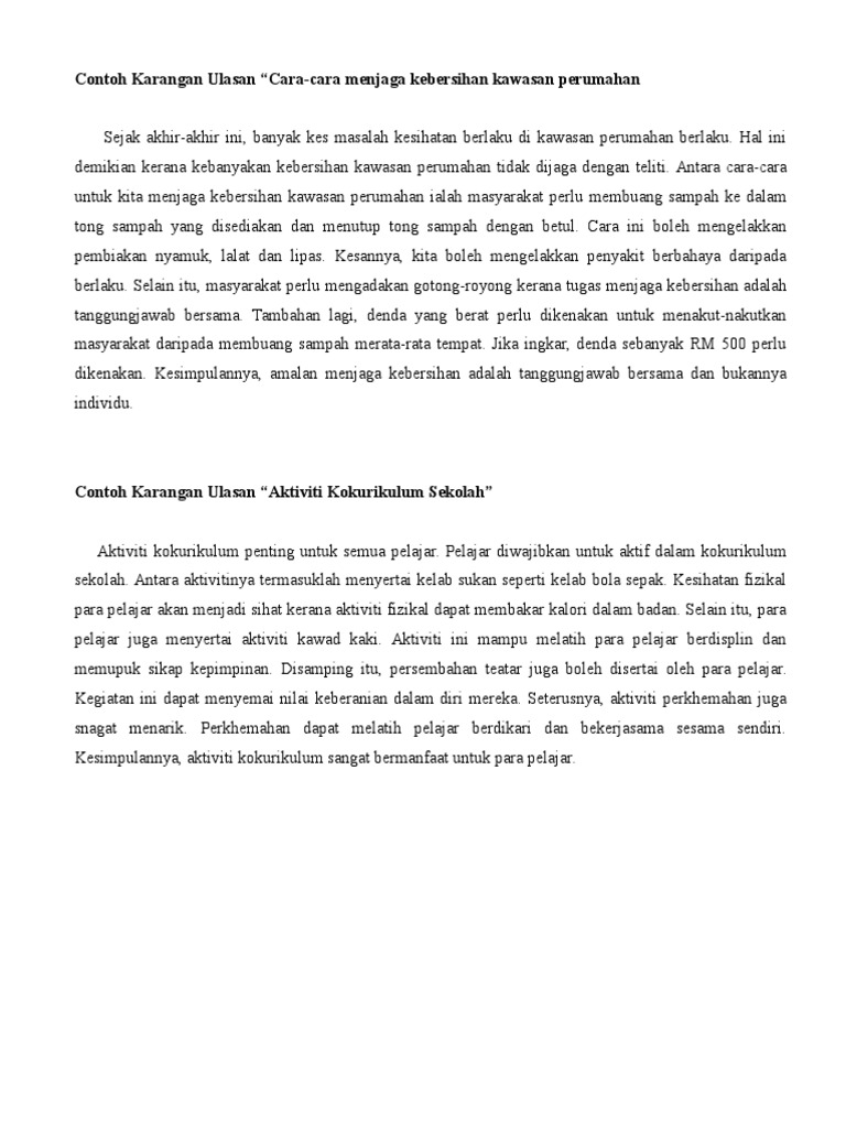 Terdiri daripada 15 subjek, seperti bahasa melayu, bahasa inggeris, sains, matematik, sejarah, geografi, pendidikan islam, khb dan subjek bahasa lain. Contoh teks ulasan singkat pendek lengkap baik benar tentang berita novel buku film novel lagu cerita pendek cerpen puisi drama pelajaran hujan 5 cm pelangi. Berdasarkan maklumat yang terdapat dalam gambar tersebut, tulisulasan yang panjangnya antara 80 hingga 100 patah perkataan. Rugi kalau tak dapat markah tinggi. Sedia maklum, calon pt3 diberikan tugasan sejarah pt3 berjudul 'masyarakat di kawasan tempat tinggal anda'. Download contoh ulasan artikel tugasan 3. Contoh ulasan untuk soalan ini : Contoh skrip forum remaja bertajuk ' peranan remaja dalam penggunaan teknologi hijau' pengerusi. Semoga perkongsian ini iaitu contoh soalan pt3 2019 bahasa melayu sedikit sebanyak dapat memberikan informasi kepada anda semua khususnya kepada guru, ibu bapa dan calon yang akan menduduki pt3 2019. Beikut merupakan contoh dan bagaimana anda menulis ulasan pt3 bahasa melayu dengan baik. Cikguchomblogspot.com, chik asan azrol azmi, pusat tuisyen pintar ilmu, jerantut, pahang. Download lagu contoh ulasan pt3 (3.22mb) dan streaming kumpulan lagu contoh ulasan pt3 (4.53mb) mp3 terbaru gratis dan enak dinikmati, video untuk melihat detail lagu contoh ulasan pt3 klik salah satu judul yang cocok, kemudian untuk link download contoh ulasan pt3 ada di. By seri cergas · updated about 3 years ago.